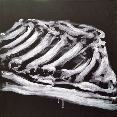 Fleisch ist seit 15 Jahren mein Thema und ich habe es seitdem in verschiedenen Sinnzusammenhängen und Malstilen dargestellt. Jetzt habe ich eine neue Serie begonnen, in der ich mein Kernthema in reiner Form, ohne Bildzusätze, aufgegriffen habe: pur sozusagen, in schwarz-weiß.