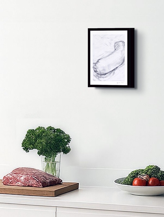 In dieser Zeichung habe ich versucht, den schlichten Genuss einer Wurst, bei der man aufpassen muss, dass man sie nach anfänglichem Probieren nicht ganz aufisst, in einer einfachen aber prägnanten Zeichnung auszudrücken. Der Zeichenstil wurde dabei von der Schule des französichen Spät-Klassizismus (Jean-Auguste-Dominique Ingres) inspiriert. Er war Lehrmeister von Edgar Degas, meinem ersten Maler-Vorbild.