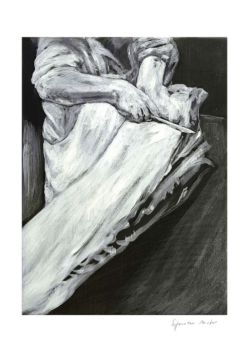 Die Fleischgemälde haben ihren Ursprung in meiner Koch- und Essleidenschaft. Nach einem Auftrag für ein Stilleben im Jahr 2007 malte ich mein damaliges Lieblingsessen: Perlhuhn bardiert mit Bauchspeck. Dieses Motiv ließ sich besonders gut darstellen, weil sich die Leidenschaften Malerei, Kochen und Essen ergänzten. Von da an war Fleisch das bestimmende Bild-Thema und 2025 beschloss ich, nur noch Fleisch abzubilden. Fleisch zu malen fasziniert und berührt mich in vielfältiger Hinsicht. Folgende Aspekte sind mir dabei wichtig: Die erdende Wirkung des Kochens und Essens, die Ehrlichkeit, Kindheitserinnerungen, das Archaische, die Üppigkeit der Renaissance.