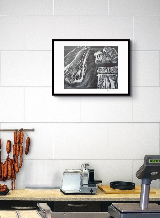 Die Fleischgemälde haben ihren Ursprung in meiner Koch- und Essleidenschaft. Nach einem Auftrag für ein Stilleben im Jahr 2007 malte ich mein damaliges Lieblingsessen: Perlhuhn bardiert mit Bauchspeck. Dieses Motiv ließ sich besonders gut darstellen, weil sich die Leidenschaften Malerei, Kochen und Essen ergänzten. Von da an war Fleisch das bestimmende Bild-Thema und 2025 beschloss ich, nur noch Fleisch abzubilden. Fleisch zu malen fasziniert und berührt mich in vielfältiger Hinsicht. Folgende Aspekte sind mir dabei wichtig: Die erdende Wirkung des Kochens und Essens, die Ehrlichkeit, Kindheitserinnerungen, das Archaische, die Üppigkeit der Renaissance.