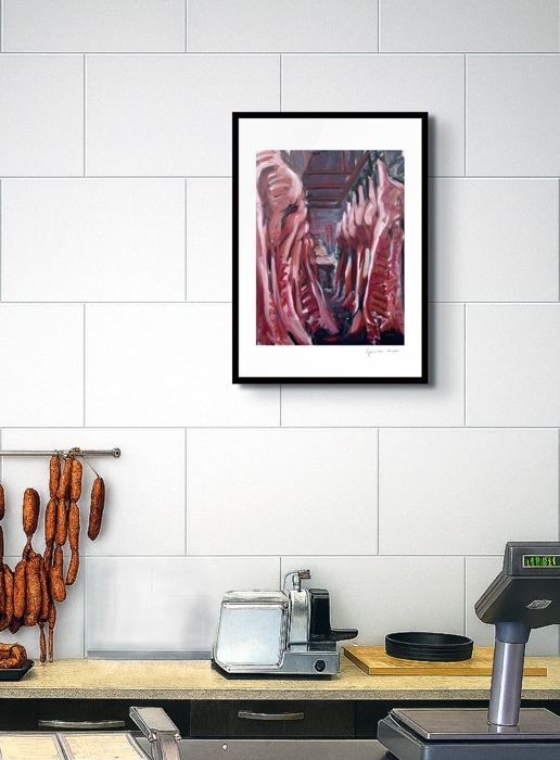 Die Fleischgemälde haben ihren Ursprung in meiner Koch- und Essleidenschaft. Nach einem Auftrag für ein Stilleben im Jahr 2007 malte ich mein damaliges Lieblingsessen: Perlhuhn bardiert mit Bauchspeck. Dieses Motiv ließ sich besonders gut darstellen, weil sich die Leidenschaften Malerei, Kochen und Essen ergänzten. Von da an war Fleisch das bestimmende Bild-Thema und 2025 beschloss ich, nur noch Fleisch abzubilden. Fleisch zu malen fasziniert und berührt mich in vielfältiger Hinsicht. Folgende Aspekte sind mir dabei wichtig: Die erdende Wirkung des Kochens und Essens, die Ehrlichkeit, Kindheitserinnerungen, das Archaische, die Üppigkeit der Renaissance.