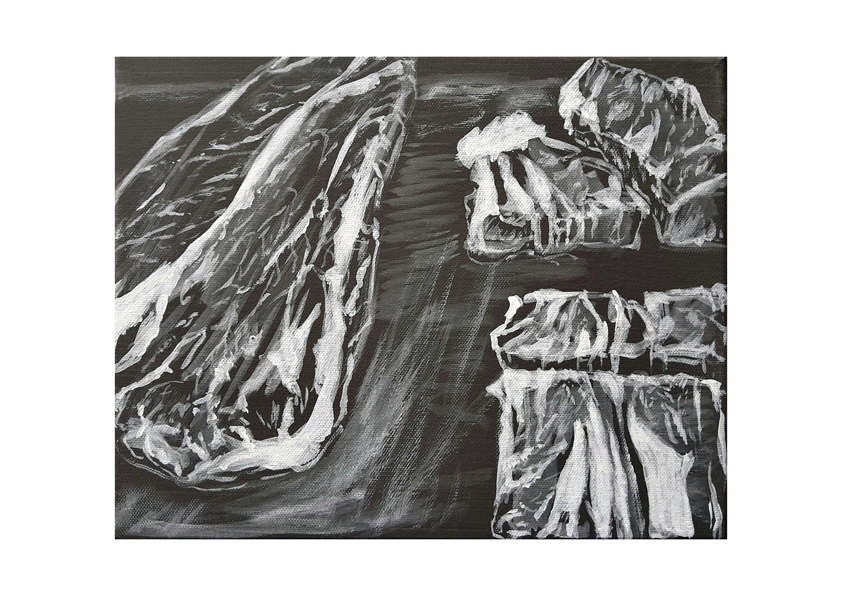 Die Fleischgemälde haben ihren Ursprung in meiner Koch- und Essleidenschaft. Nach einem Auftrag für ein Stilleben im Jahr 2007 malte ich mein damaliges Lieblingsessen: Perlhuhn bardiert mit Bauchspeck. Dieses Motiv ließ sich besonders gut darstellen, weil sich die Leidenschaften Malerei, Kochen und Essen ergänzten. Von da an war Fleisch das bestimmende Bild-Thema und 2025 beschloss ich, nur noch Fleisch abzubilden. Fleisch zu malen fasziniert und berührt mich in vielfältiger Hinsicht. Folgende Aspekte sind mir dabei wichtig: Die erdende Wirkung des Kochens und Essens, die Ehrlichkeit, Kindheitserinnerungen, das Archaische, die Üppigkeit der Renaissance.
