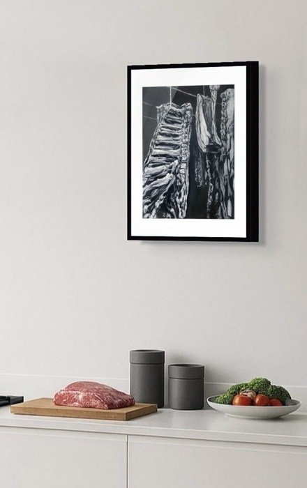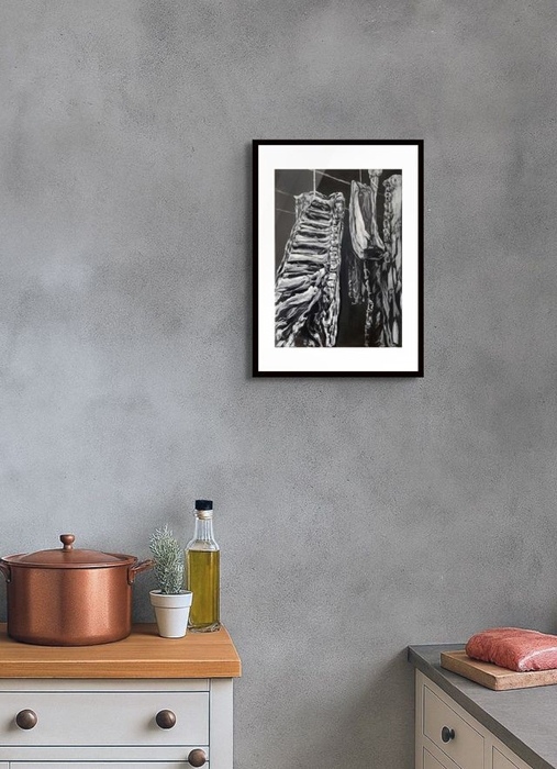 Die Fleischgemälde haben ihren Ursprung in meiner Koch- und Essleidenschaft. Nach einem Auftrag für ein Stilleben im Jahr 2007 malte ich mein damaliges Lieblingsessen: Perlhuhn bardiert mit Bauchspeck. Dieses Motiv ließ sich besonders gut darstellen, weil sich die Leidenschaften Malerei, Kochen und Essen ergänzten. Von da an war Fleisch das bestimmende Bild-Thema und 2025 beschloss ich, nur noch Fleisch abzubilden. Fleisch zu malen fasziniert und berührt mich in vielfältiger Hinsicht. Folgende Aspekte sind mir dabei wichtig: Die erdende Wirkung des Kochens und Essens, die Ehrlichkeit, Kindheitserinnerungen, das Archaische, die Üppigkeit der Renaissance.
