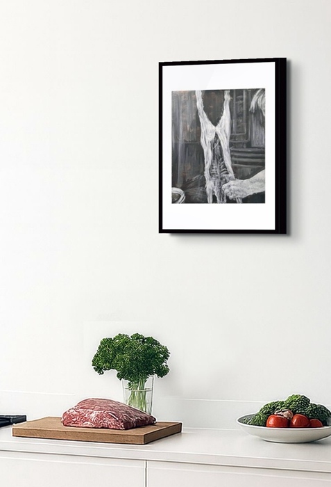 Die Fleischgemälde haben ihren Ursprung in meiner Koch- und Essleidenschaft. Nach einem Auftrag für ein Stilleben im Jahr 2007 malte ich mein damaliges Lieblingsessen: Perlhuhn bardiert mit Bauchspeck. Dieses Motiv ließ sich besonders gut darstellen, weil sich die Leidenschaften Malerei, Kochen und Essen ergänzten. Von da an war Fleisch das bestimmende Bild-Thema und 2025 beschloss ich, nur noch Fleisch abzubilden. Fleisch zu malen fasziniert und berührt mich in vielfältiger Hinsicht. Folgende Aspekte sind mir dabei wichtig: Die erdende Wirkung des Kochens und Essens, die Ehrlichkeit, Kindheitserinnerungen, das Archaische, die Üppigkeit der Renaissance.