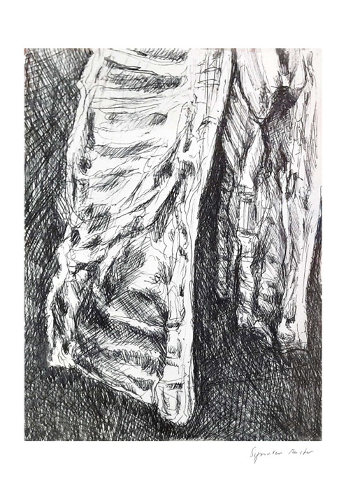 Die Fleischgemälde haben ihren Ursprung in meiner Koch- und Essleidenschaft. Nach einem Auftrag für ein Stilleben im Jahr 2007 malte ich mein damaliges Lieblingsessen: Perlhuhn bardiert mit Bauchspeck. Dieses Motiv ließ sich besonders gut darstellen, weil sich die Leidenschaften Malerei, Kochen und Essen ergänzten. Von da an war Fleisch das bestimmende Bild-Thema und 2025 beschloss ich, nur noch Fleisch abzubilden. Fleisch zu malen fasziniert und berührt mich in vielfältiger Hinsicht. Folgende Aspekte sind mir dabei wichtig: Die erdende Wirkung des Kochens und Essens, die Ehrlichkeit, Kindheitserinnerungen, das Archaische, die Üppigkeit der Renaissance.