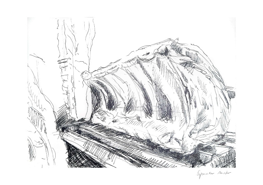 Die Fleischgemälde haben ihren Ursprung in meiner Koch- und Essleidenschaft. Nach einem Auftrag für ein Stilleben im Jahr 2007 malte ich mein damaliges Lieblingsessen: Perlhuhn bardiert mit Bauchspeck. Dieses Motiv ließ sich besonders gut darstellen, weil sich die Leidenschaften Malerei, Kochen und Essen ergänzten. Von da an war Fleisch das bestimmende Bild-Thema und 2025 beschloss ich, nur noch Fleisch abzubilden. Fleisch zu malen fasziniert und berührt mich in vielfältiger Hinsicht. Folgende Aspekte sind mir dabei wichtig: Die erdende Wirkung des Kochens und Essens, die Ehrlichkeit, Kindheitserinnerungen, das Archaische, die Üppigkeit der Renaissance.