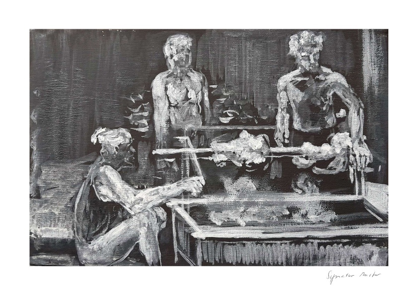 Die Fleischgemälde haben ihren Ursprung in meiner Koch- und Essleidenschaft. Nach einem Auftrag für ein Stilleben im Jahr 2007 malte ich mein damaliges Lieblingsessen: Perlhuhn bardiert mit Bauchspeck. Dieses Motiv ließ sich besonders gut darstellen, weil sich die Leidenschaften Malerei, Kochen und Essen ergänzten. Von da an war Fleisch das bestimmende Bild-Thema und 2025 beschloss ich, nur noch Fleisch abzubilden. Fleisch zu malen fasziniert und berührt mich in vielfältiger Hinsicht. Folgende Aspekte sind mir dabei wichtig: Die erdende Wirkung des Kochens und Essens, die Ehrlichkeit, Kindheitserinnerungen, das Archaische, die Üppigkeit der Renaissance.