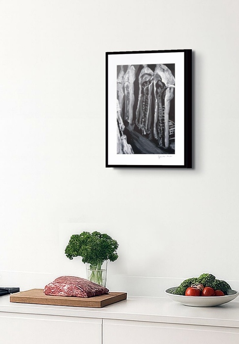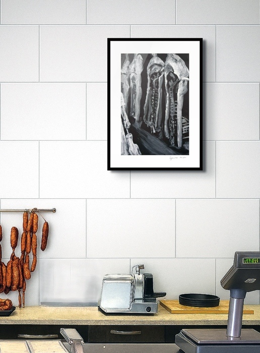 Die Fleischgemälde haben ihren Ursprung in meiner Koch- und Essleidenschaft. Nach einem Auftrag für ein Stilleben im Jahr 2007 malte ich mein damaliges Lieblingsessen: Perlhuhn bardiert mit Bauchspeck. Dieses Motiv ließ sich besonders gut darstellen, weil sich die Leidenschaften Malerei, Kochen und Essen ergänzten. Von da an war Fleisch das bestimmende Bild-Thema und 2025 beschloss ich, nur noch Fleisch abzubilden. Fleisch zu malen fasziniert und berührt mich in vielfältiger Hinsicht. Folgende Aspekte sind mir dabei wichtig: Die erdende Wirkung des Kochens und Essens, die Ehrlichkeit, Kindheitserinnerungen, das Archaische, die Üppigkeit der Renaissance.