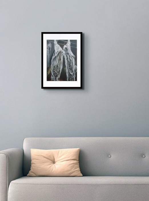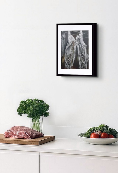 Die Fleischgemälde haben ihren Ursprung in meiner Koch- und Essleidenschaft. Nach einem Auftrag für ein Stilleben im Jahr 2007 malte ich mein damaliges Lieblingsessen: Perlhuhn bardiert mit Bauchspeck. Dieses Motiv ließ sich besonders gut darstellen, weil sich die Leidenschaften Malerei, Kochen und Essen ergänzten. Von da an war Fleisch das bestimmende Bild-Thema und 2025 beschloss ich, nur noch Fleisch abzubilden. Fleisch zu malen fasziniert und berührt mich in vielfältiger Hinsicht. Folgende Aspekte sind mir dabei wichtig: Die erdende Wirkung des Kochens und Essens, die Ehrlichkeit, Kindheitserinnerungen, das Archaische, die Üppigkeit der Renaissance.