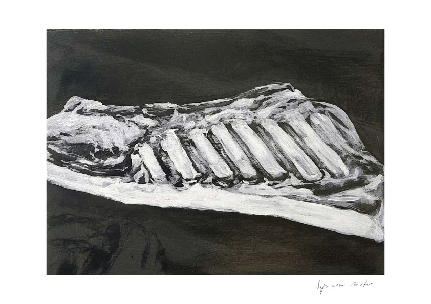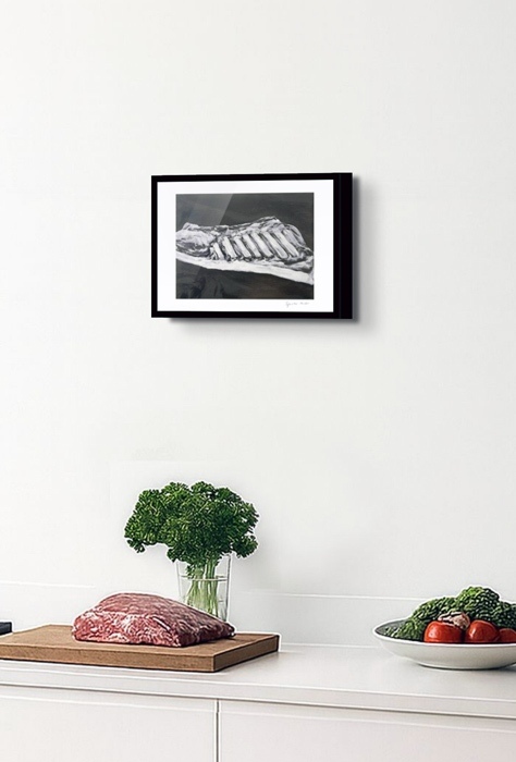 Die Fleischgemälde haben ihren Ursprung in meiner Koch- und Essleidenschaft. Nach einem Auftrag für ein Stilleben im Jahr 2007 malte ich mein damaliges Lieblingsessen: Perlhuhn bardiert mit Bauchspeck. Dieses Motiv ließ sich besonders gut darstellen, weil sich die Leidenschaften Malerei, Kochen und Essen ergänzten. Von da an war Fleisch das bestimmende Bild-Thema und 2025 beschloss ich, nur noch Fleisch abzubilden. Fleisch zu malen fasziniert und berührt mich in vielfältiger Hinsicht. Folgende Aspekte sind mir dabei wichtig: Die erdende Wirkung des Kochens und Essens, die Ehrlichkeit, Kindheitserinnerungen, das Archaische, die Üppigkeit der Renaissance.