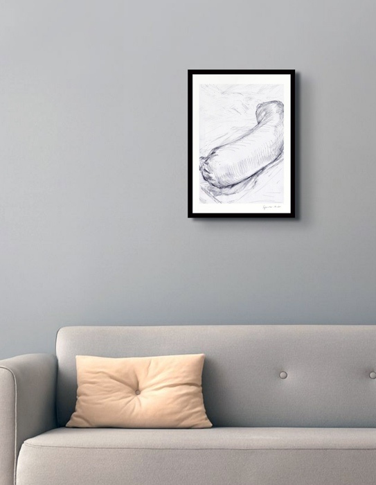 In der Zeichung Fleischwurst linear (Kugelschreiber auf Papier, 21 x 30 cm, 2025) habe ich versucht, den schlichten Genuss einer Wurst, bei der man aufpassen muss, dass man sie nach anfänglichem Probieren nicht ganz aufisst, in einer einfachen aber prägnanten Zeichnung auszudrücken. Der Zeichenstil wurde dabei von der Schule des französichen Spät-Klassizismus (Jean-Auguste-Dominique Ingres) inspiriert. Er war Lehrmeister von Edgar Degas, meinem ersten Maler-Vorbild.