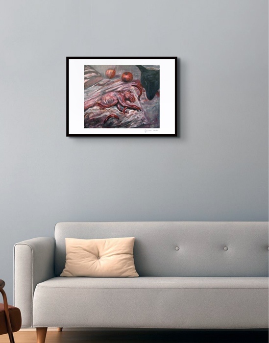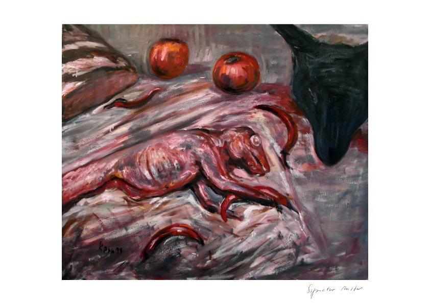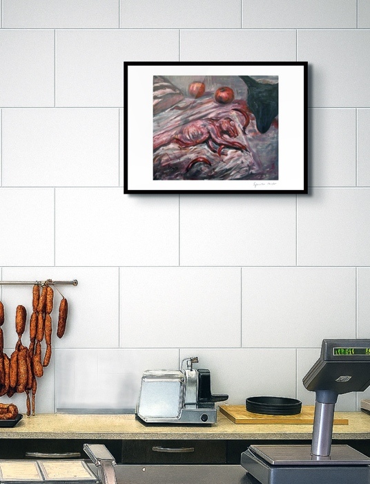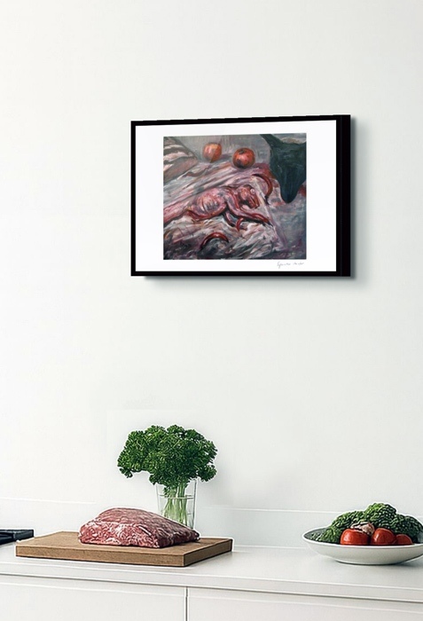 Die Fleischgemälde haben ihren Ursprung in meiner Koch- und Essleidenschaft. Nach einem Auftrag für ein Stilleben im Jahr 2007 malte ich mein damaliges Lieblingsessen: Perlhuhn bardiert mit Bauchspeck. Dieses Motiv ließ sich besonders gut darstellen, weil sich die Leidenschaften Malerei, Kochen und Essen ergänzten. Von da an war Fleisch das bestimmende Bild-Thema und 2025 beschloss ich, nur noch Fleisch abzubilden. Fleisch zu malen fasziniert und berührt mich in vielfältiger Hinsicht. Folgende Aspekte sind mir dabei wichtig: Die erdende Wirkung des Kochens und Essens, die Ehrlichkeit, Kindheitserinnerungen, das Archaische, die Üppigkeit der Renaissance.