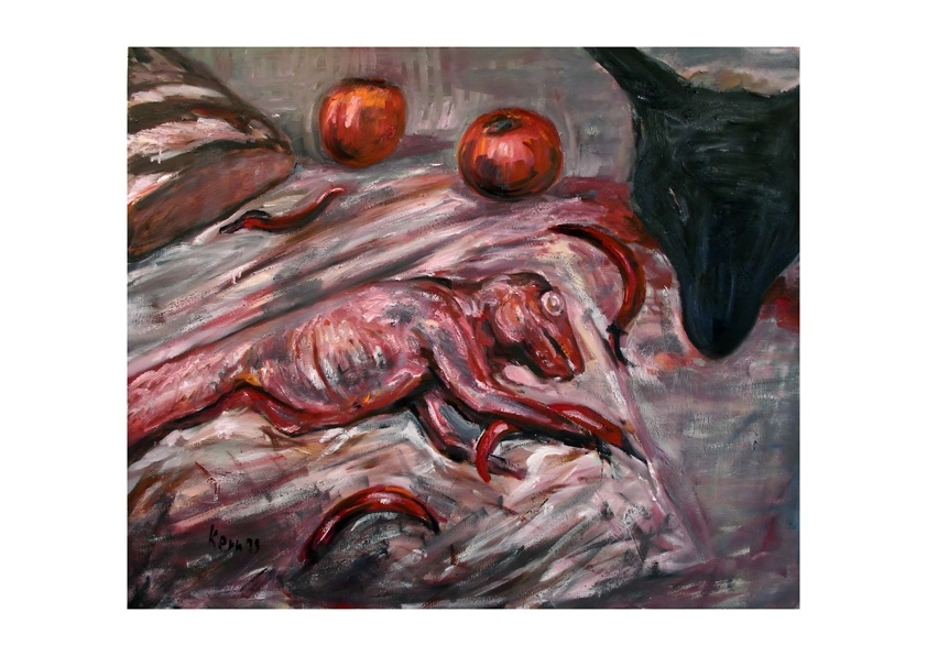 Die Fleischgemälde haben ihren Ursprung in meiner Koch- und Essleidenschaft. Nach einem Auftrag für ein Stilleben im Jahr 2007 malte ich mein damaliges Lieblingsessen: Perlhuhn bardiert mit Bauchspeck. Dieses Motiv ließ sich besonders gut darstellen, weil sich die Leidenschaften Malerei, Kochen und Essen ergänzten. Von da an war Fleisch das bestimmende Bild-Thema und 2025 beschloss ich, nur noch Fleisch abzubilden. Fleisch zu malen fasziniert und berührt mich in vielfältiger Hinsicht. Folgende Aspekte sind mir dabei wichtig: Die erdende Wirkung des Kochens und Essens, die Ehrlichkeit, Kindheitserinnerungen, das Archaische, die Üppigkeit der Renaissance.