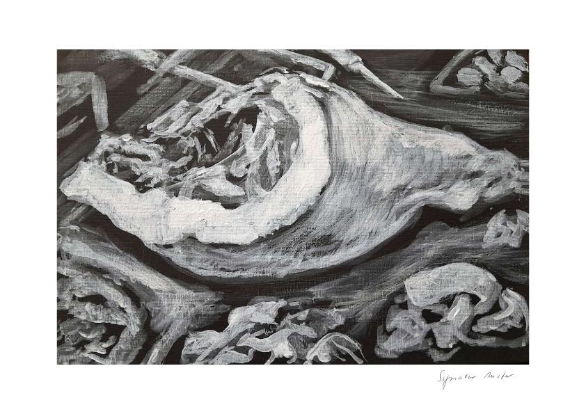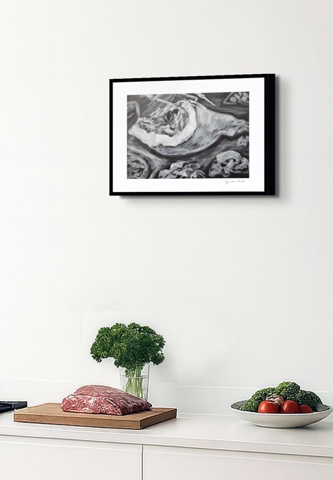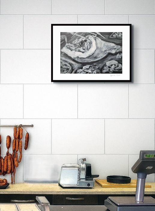 Die Fleischgemälde haben ihren Ursprung in meiner Koch- und Essleidenschaft. Nach einem Auftrag für ein Stilleben im Jahr 2007 malte ich mein damaliges Lieblingsessen: Perlhuhn bardiert mit Bauchspeck. Dieses Motiv ließ sich besonders gut darstellen, weil sich die Leidenschaften Malerei, Kochen und Essen ergänzten. Von da an war Fleisch das bestimmende Bild-Thema und 2025 beschloss ich, nur noch Fleisch abzubilden. Fleisch zu malen fasziniert und berührt mich in vielfältiger Hinsicht. Folgende Aspekte sind mir dabei wichtig: Die erdende Wirkung des Kochens und Essens, die Ehrlichkeit, Kindheitserinnerungen, das Archaische, die Üppigkeit der Renaissance.