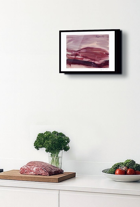Die Fleischgemälde haben ihren Ursprung in meiner Koch- und Essleidenschaft. Nach einem Auftrag für ein Stilleben im Jahr 2007 malte ich mein damaliges Lieblingsessen: Perlhuhn bardiert mit Bauchspeck. Dieses Motiv ließ sich besonders gut darstellen, weil sich die Leidenschaften Malerei, Kochen und Essen ergänzten. Von da an war Fleisch das bestimmende Bild-Thema und 2025 beschloss ich, nur noch Fleisch abzubilden. Fleisch zu malen fasziniert und berührt mich in vielfältiger Hinsicht. Folgende Aspekte sind mir dabei wichtig: Die erdende Wirkung des Kochens und Essens, die Ehrlichkeit, Kindheitserinnerungen, das Archaische, die Üppigkeit der Renaissance.