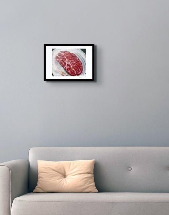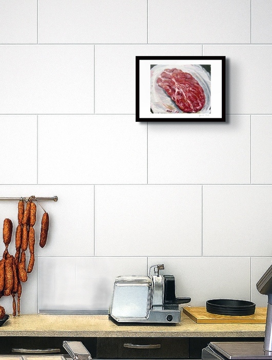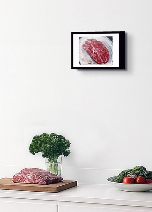Die Fleischgemälde haben ihren Ursprung in meiner Koch- und Essleidenschaft. Nach einem Auftrag für ein Stilleben im Jahr 2007 malte ich mein damaliges Lieblingsessen: Perlhuhn bardiert mit Bauchspeck. Dieses Motiv ließ sich besonders gut darstellen, weil sich die Leidenschaften Malerei, Kochen und Essen ergänzten. Von da an war Fleisch das bestimmende Bild-Thema und 2025 beschloss ich, nur noch Fleisch abzubilden. Fleisch zu malen fasziniert und berührt mich in vielfältiger Hinsicht. Folgende Aspekte sind mir dabei wichtig: Die erdende Wirkung des Kochens und Essens, die Ehrlichkeit, Kindheitserinnerungen, das Archaische, die Üppigkeit der Renaissance.