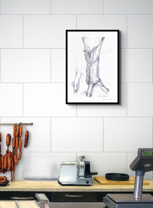 Die Fleischgemälde haben ihren Ursprung in meiner Koch- und Essleidenschaft. Nach einem Auftrag für ein Stilleben im Jahr 2007 malte ich mein damaliges Lieblingsessen: Perlhuhn bardiert mit Bauchspeck. Dieses Motiv ließ sich besonders gut darstellen, weil sich die Leidenschaften Malerei, Kochen und Essen ergänzten. Von da an war Fleisch das bestimmende Bild-Thema und 2025 beschloss ich, nur noch Fleisch abzubilden. Fleisch zu malen fasziniert und berührt mich in vielfältiger Hinsicht. Folgende Aspekte sind mir dabei wichtig: Die erdende Wirkung des Kochens und Essens, die Ehrlichkeit, Kindheitserinnerungen, das Archaische, die Üppigkeit der Renaissance.