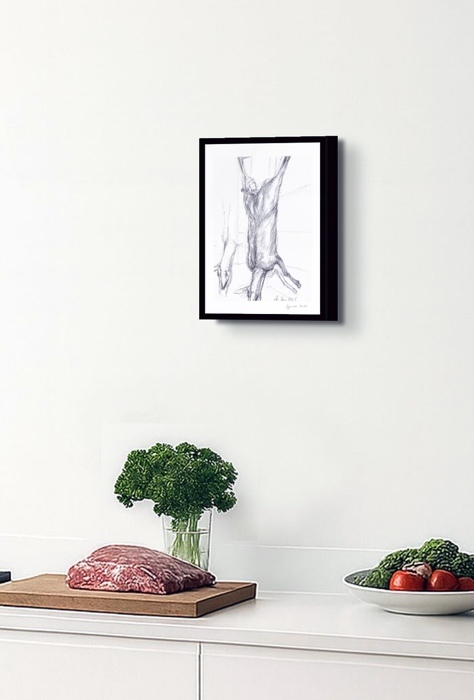 Die Fleischgemälde haben ihren Ursprung in meiner Koch- und Essleidenschaft. Nach einem Auftrag für ein Stilleben im Jahr 2007 malte ich mein damaliges Lieblingsessen: Perlhuhn bardiert mit Bauchspeck. Dieses Motiv ließ sich besonders gut darstellen, weil sich die Leidenschaften Malerei, Kochen und Essen ergänzten. Von da an war Fleisch das bestimmende Bild-Thema und 2025 beschloss ich, nur noch Fleisch abzubilden. Fleisch zu malen fasziniert und berührt mich in vielfältiger Hinsicht. Folgende Aspekte sind mir dabei wichtig: Die erdende Wirkung des Kochens und Essens, die Ehrlichkeit, Kindheitserinnerungen, das Archaische, die Üppigkeit der Renaissance.