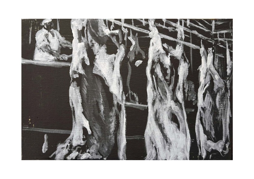 Die Fleischgemälde haben ihren Ursprung in meiner Koch- und Essleidenschaft. Nach einem Auftrag für ein Stilleben im Jahr 2007 malte ich mein damaliges Lieblingsessen: Perlhuhn bardiert mit Bauchspeck. Dieses Motiv ließ sich besonders gut darstellen, weil sich die Leidenschaften Malerei, Kochen und Essen ergänzten. Von da an war Fleisch das bestimmende Bild-Thema und 2025 beschloss ich, nur noch Fleisch abzubilden. Fleisch zu malen fasziniert und berührt mich in vielfältiger Hinsicht. Folgende Aspekte sind mir dabei wichtig: Die erdende Wirkung des Kochens und Essens, die Ehrlichkeit, Kindheitserinnerungen, das Archaische, die Üppigkeit der Renaissance.