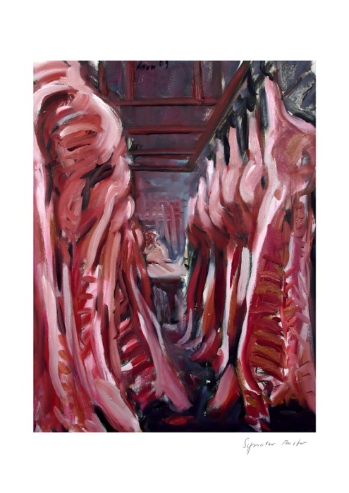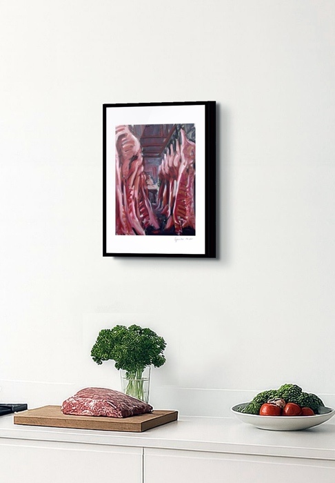 Die Fleischgemälde haben ihren Ursprung in meiner Koch- und Essleidenschaft. Nach einem Auftrag für ein Stilleben im Jahr 2007 malte ich mein damaliges Lieblingsessen: Perlhuhn bardiert mit Bauchspeck. Dieses Motiv ließ sich besonders gut darstellen, weil sich die Leidenschaften Malerei, Kochen und Essen ergänzten. Von da an war Fleisch das bestimmende Bild-Thema und 2025 beschloss ich, nur noch Fleisch abzubilden. Fleisch zu malen fasziniert und berührt mich in vielfältiger Hinsicht. Folgende Aspekte sind mir dabei wichtig: Die erdende Wirkung des Kochens und Essens, die Ehrlichkeit, Kindheitserinnerungen, das Archaische, die Üppigkeit der Renaissance.