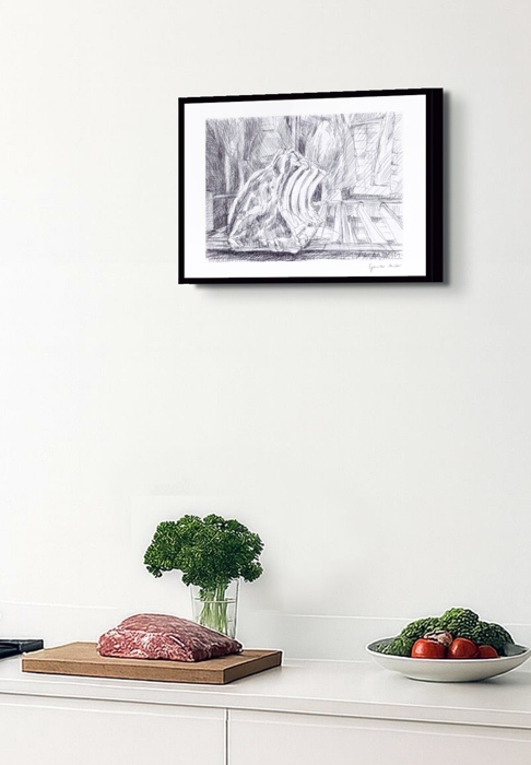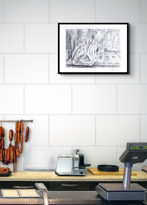 Die Fleischgemälde haben ihren Ursprung in meiner Koch- und Essleidenschaft. Nach einem Auftrag für ein Stilleben im Jahr 2007 malte ich mein damaliges Lieblingsessen: Perlhuhn bardiert mit Bauchspeck. Dieses Motiv ließ sich besonders gut darstellen, weil sich die Leidenschaften Malerei, Kochen und Essen ergänzten. Von da an war Fleisch das bestimmende Bild-Thema und 2025 beschloss ich, nur noch Fleisch abzubilden. Fleisch zu malen fasziniert und berührt mich in vielfältiger Hinsicht. Folgende Aspekte sind mir dabei wichtig: Die erdende Wirkung des Kochens und Essens, die Ehrlichkeit, Kindheitserinnerungen, das Archaische, die Üppigkeit der Renaissance.